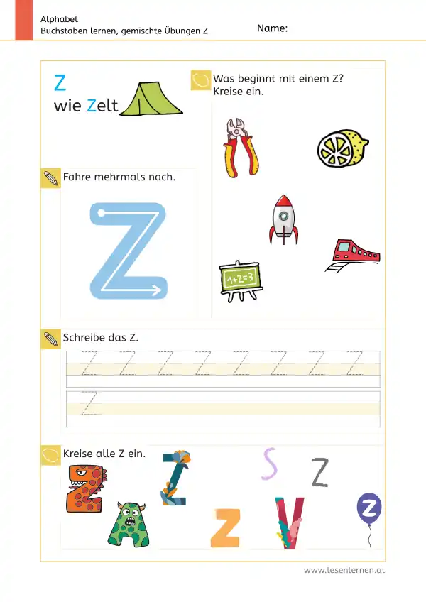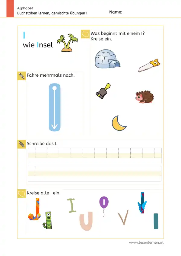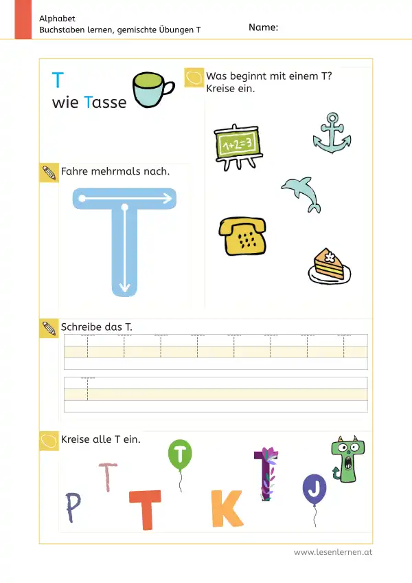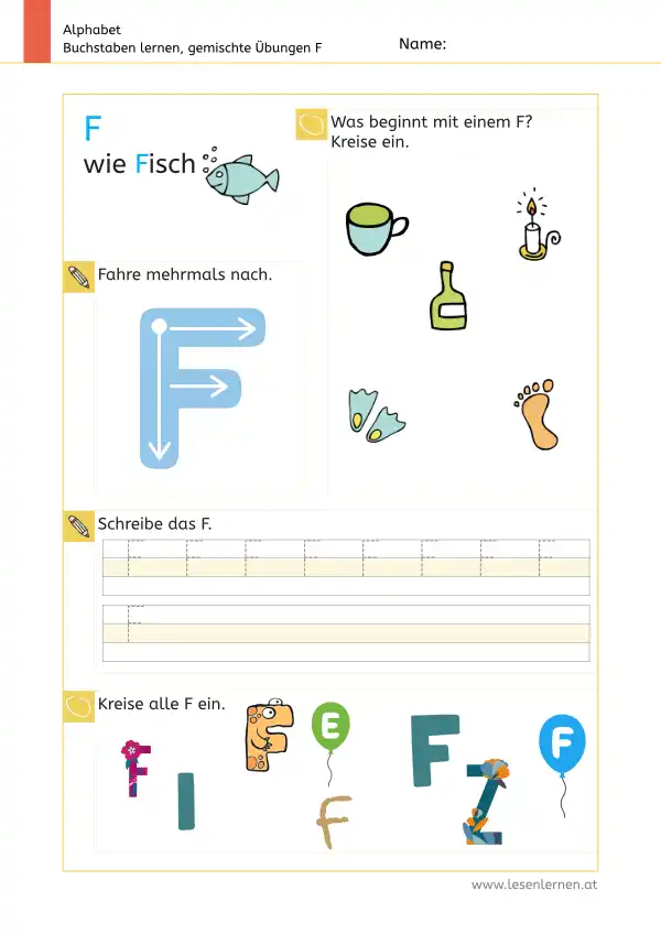 -> Arbeitsblätter: Buchstaben – gemischte Übungen