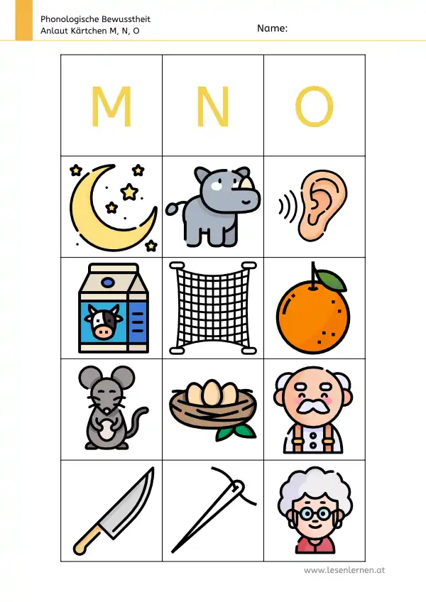 Hier findest du meine Anlautkärtchen von A bis Z. Die Kinder schauen das Bild an, sprechen das Wort laut und sagen den Anlaut (z. B. Apfel – A).
