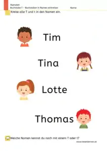 Wörter mit T: Wortlisten Grundschule