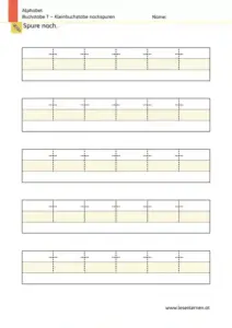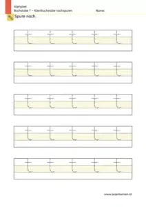 Erst allmählich sollten klassische Nachspuraufgaben zum Einsatz kommen. Das Nachspuren von Buchstaben sollte dabei nicht zu oft eingesetzt werden. Seitenweises, ausschließliches Nachspuren ist weder zielführend noch motivationsfördernd.
