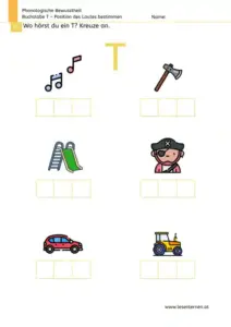Schwieriger ist die Aufgabe, mehrere Bilder einem Laut zuzuordnen. Dafür müssen Kinder den Buchstaben T eindeutig benennen können.