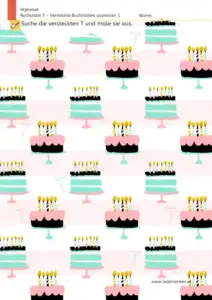 Einfache Rätsel kommen bei Kinder gut an. Besonders beliebt ist das Suchen nach etwas Verborgenem. Das Suchen nach Buchstaben schult die Konzentration und das visuelle Gedächtnis, das anschließende Ausmalen, das genaue Arbeiten und die Feinmotorik der Kinder.