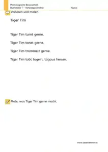 Du solltest dabei sicherstellen, dass das Kind alle vorkommenden Wörter versteht, dann eignet sich der Text für weiterführende Übungen.
