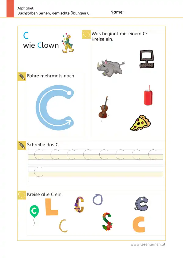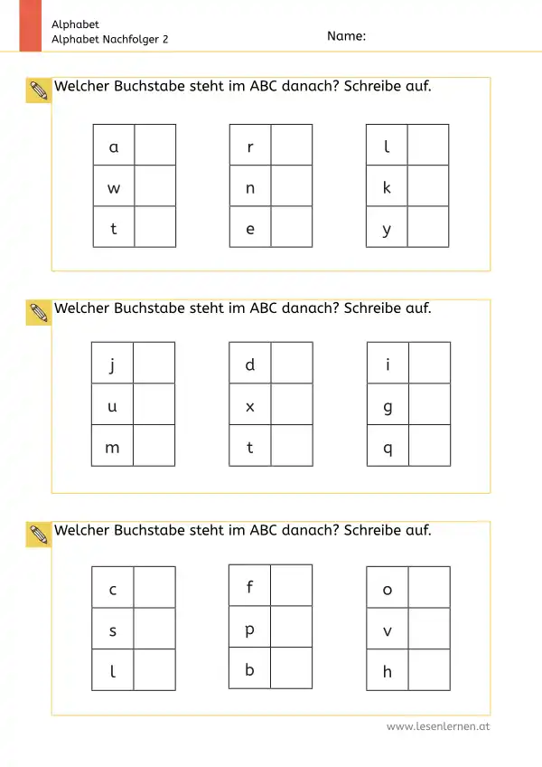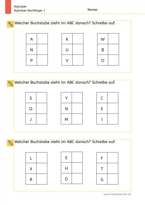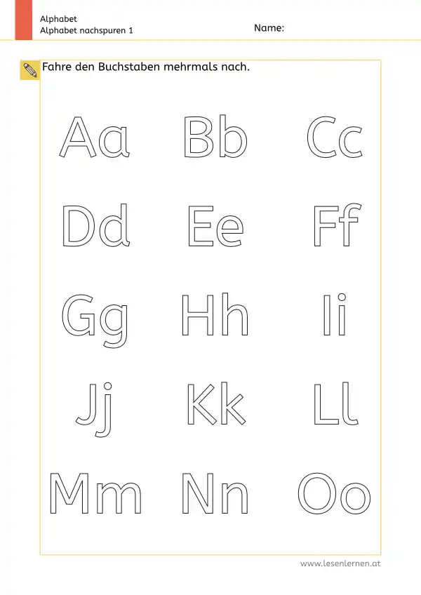 Hier findest du unterschiedliche Übungen zum Üben des Alphabets.