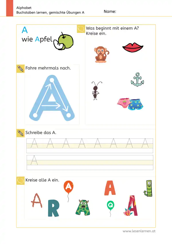 Alles zum Buchstabenlernen an einem Ort: Infos, Arbeitsblätter, Materialien und Übungen für Kinder.