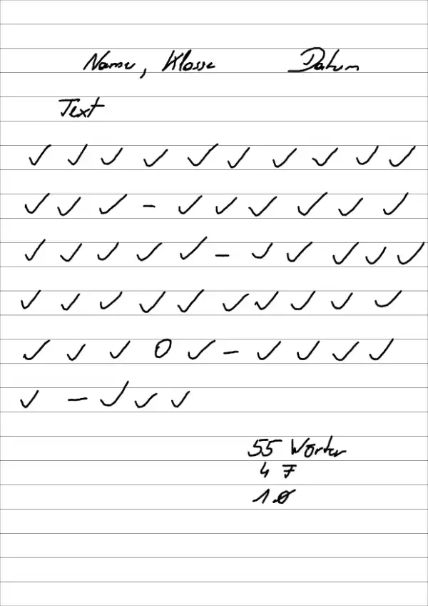 Auf diese Weise entsteht ein Protokoll, das klar erkennen lässt, wie viele Wörter korrekt gelesen wurden, welche Fehler aufgetreten sind und an welcher Stelle der Text nach einer Minute abgebrochen wurde.