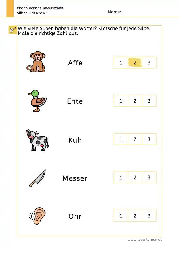 Silben klatschen – Phonologische Bewusstheit – 1. Klasse