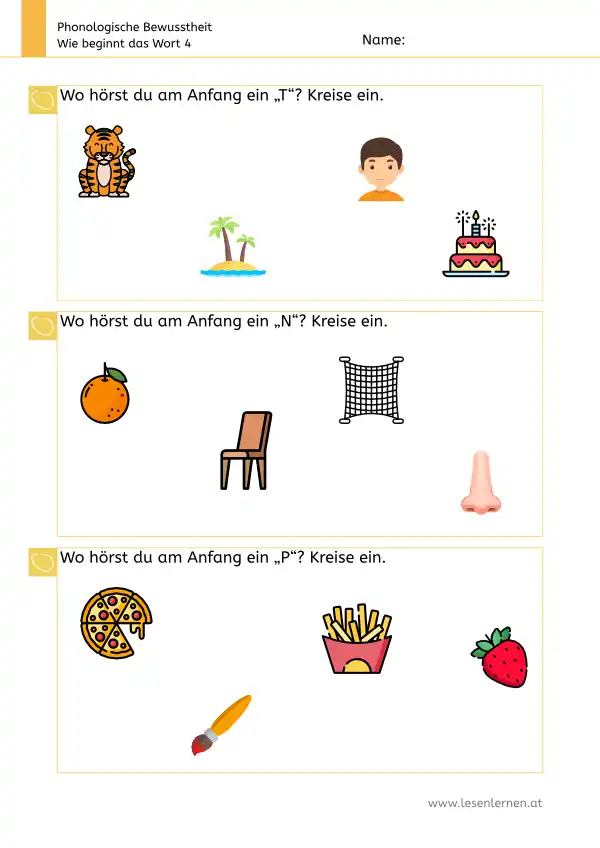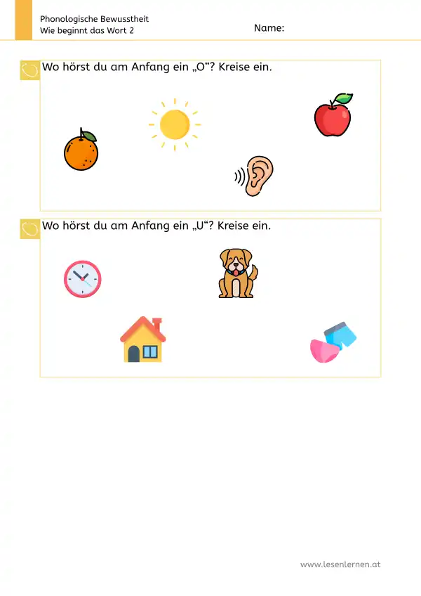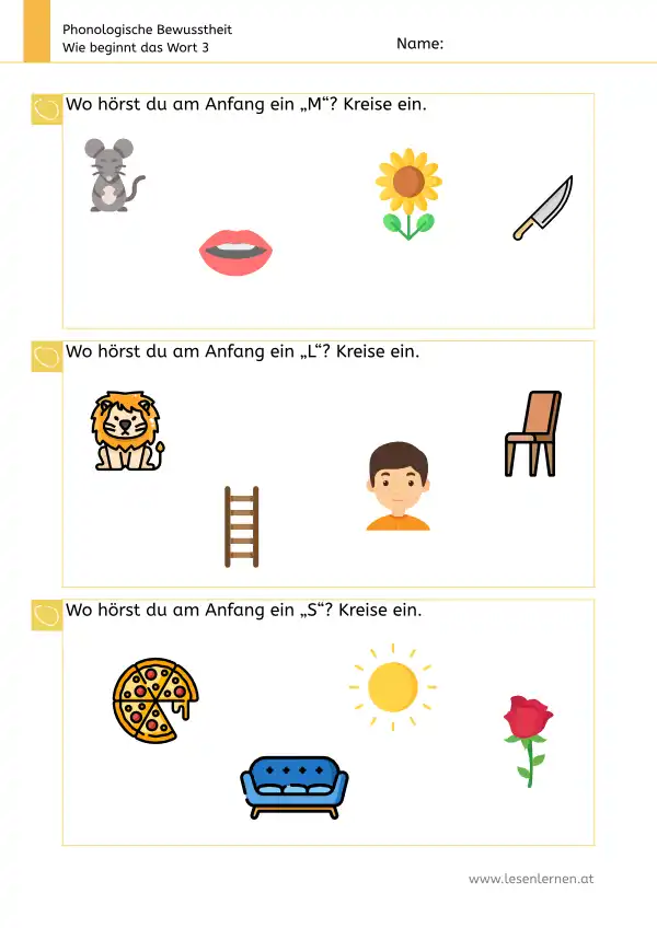 Phonologische Bewusstheit dreht sich um gesprochene Sprache – Kinder müssen also etwas heraushören. Um das zu Üben, gibt es diese Vorstufe.