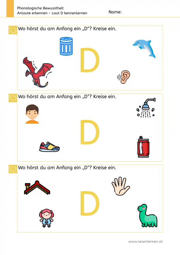 Diese kostenlosen Arbeitsblätter helfen Kindern, die Anlaute von Wörtern zu erkennen und bewusst wahrzunehmen. Beim Betrachten der Bilder sprechen sie die Wörter laut aus und hören genau hin: Mit welchem Laut beginnt das Wort?