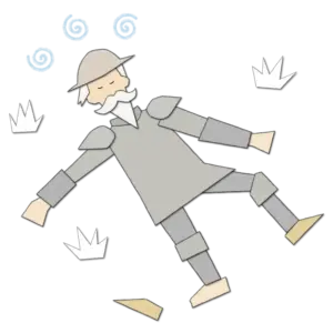 Die Windmühle wuchs, je näher Konrad kam. Jeden Moment würde er seinen Feind erreichen. Plötzlich traf ein Flügel der Windmühle Konrad am Kopf.