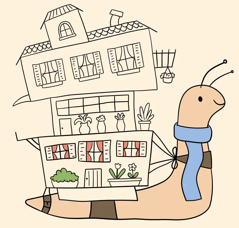 Vorsichtig kroch Lappaburga los. Das Haus schwankte hin und her, aber es fiel nicht um. Sie war jetzt keine Nacktschnecke mehr. Sie war eine Bauschnecke!